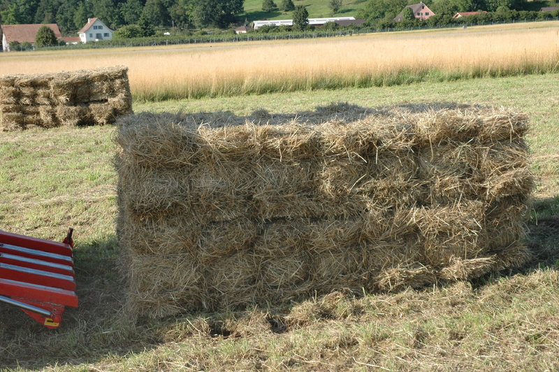 Das Heu wurde spät geschnitten. In Kleinballen.
