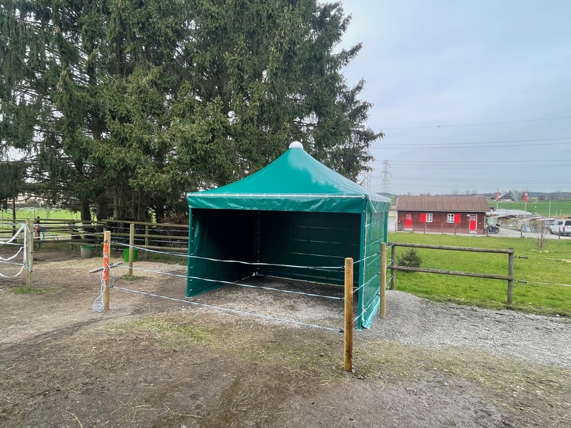 Verwendbar als Weidezelt/Weideunterstand, Tierunterstand, Lagerzelt, Carport, Traktorunterstand, Gartenzelt, Partyzelt, Messestand, Eventzelt, Getränkepavillon, Pagodenzelt, Fumoir, Raucherzelt etc.